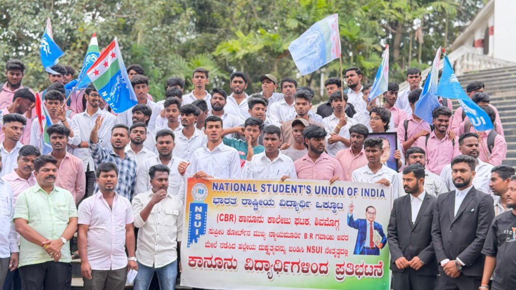 ನ್ಯಾಯಾಂಗ ಭಾರತ ಸಂವಿಧಾನದ ಪ್ರಮುಖ ಅಂಗವಾಗಿದೆ. ನಮ್ಮ ಸಂವಿಧಾನವನ್ನು ರಕ್ಷಿಸುವ ಜವಾಬ್ದಾರಿಯುತ ಅಂಗವಾದ ನ್ಯಾಯಾಂಗದ ಮೇಲೆ ವಕೀಲರೊಬ್ಬರು ಅಕ್ಟೋಬರ್ 6ರಂದು ಹಲ್ಲೆ ನಡೆಸುವ ಮೂಲಕ ಸಂವಿಧಾನಕ್ಕೆ ಅಪಚಾರವೆಸಗುವ ಕೃತ್ಯವೆಸಗಿದ್ದು, ಇದನ್ನು ಶಿವಮೊಗ್ಗದ ಸಿ.ಬಿ.ಆರ್. ರಾಷ್ಟ್ರೀಯ ಕಾನೂನು ಕಾಲೇಜಿನ ಎನ್.ಎಸ್.ಯು.ಐ. ಘಟಕ ತೀವ್ರವಾಗಿ ಖಂಡಿಸಿ ಪ್ರತಿಭಟಿಸಿತು.
