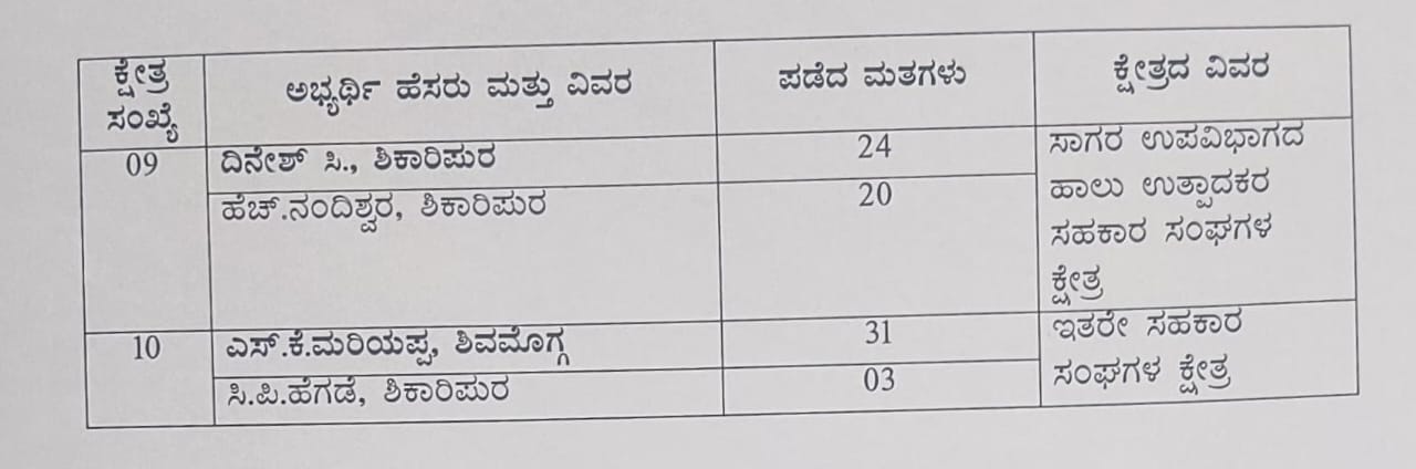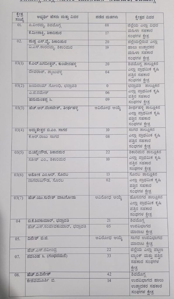 *ಸಾಕಷ್ಟು ಕುತೂಹಲ ಕೆರಳಿಸಿದ್ದ ಶಿವಮೊಗ್ಗ ಜಿಲ್ಲಾ ಸಹಕಾರ ಯೂನಿಯನ್ ನಿಯಮಿತದ ನಿರ್ದೇಶಕರ ಚುನಾವಣೆ* *ಭಾನುವಾರದಂದು ನಡೆದ ಈ ಚುನಾವಣೆಯಲ್ಲಿ ಗೆದ್ದವರು ಮತ್ತು ಸೋತವರ ಪಟ್ಟಿ ಇಲ್ಲಿದೆ* *ಪಡೆದ ಮತಗಳ ವಿವರವೂ ಇಲ್ಲಿದೆ*
