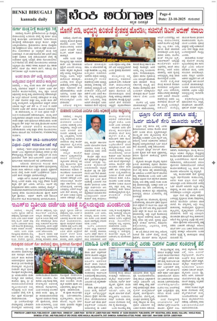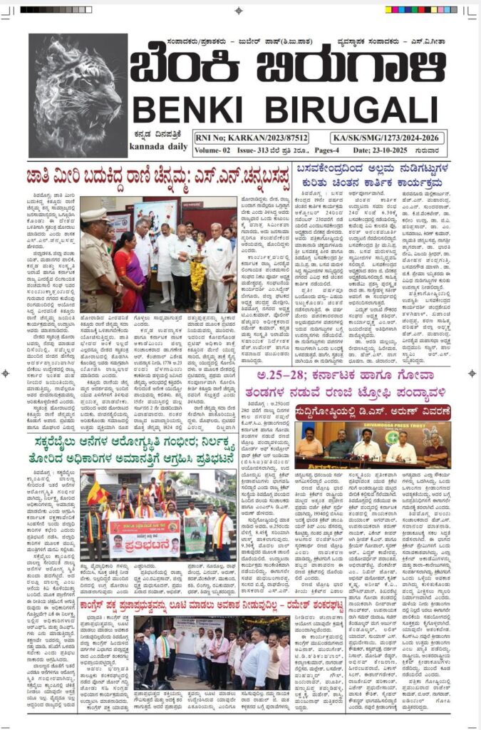 *ವಿಧಾನ ಪರಿಷತ್ ಸದಸ್ಯ ಡಿ.ಎಸ್.ಅರುಣ್- ಕೆ ಎಸ್ ಸಿ ಎ ಶಿವಮೊಗ್ಗ ಝೋನ್ ಕನ್ವೀನರ್ ಹೆಚ್.ಎಸ್. ಸದಾನಂದರಿಂದ ಪತ್ರಿಕಾಗೋಷ್ಠಿ* *ಶಿವಮೊಗ್ಗದ ನವುಲೆ ಕೆ ಎಸ್ ಸಿ ಎ ಕ್ರೀಡಾಂಗಣದಲ್ಲಿ ಕರ್ನಾಟಕ ಹಾಗೂ ಗೋವಾ ತಂಡಗಳ ರಣಜಿ ಟ್ರೋಫಿ ಪಂದ್ಯ* *ಬೋರ್ಡ್ ಆಫ್ ಕಂಟ್ರೋಲ್ ಫಾರ್ ಕ್ರಿಕೆಟ್ ಇನ್ ಇಂಡಿಯಾ(ಬಿಸಿಸಿಐ)ಯಿಂದ ಆಯೋಜನೆ* *ಕರ್ನಾಟಕ-ಗೋವಾ ತಂಡದಲ್ಲಿ ಯಾರೆಲ್ಲ ಆಡಲಿದ್ದಾರೆ?* ಶಿ.ಜು.ಪಾಶ/Shi.ju.pasha MalenaduExpressOctober 23, 2025 0