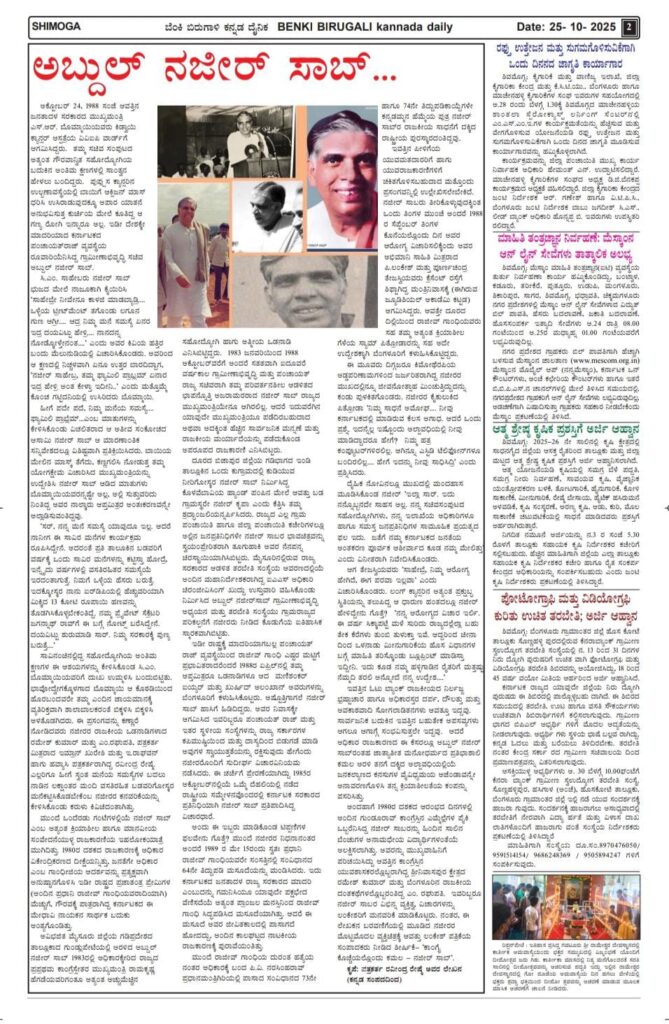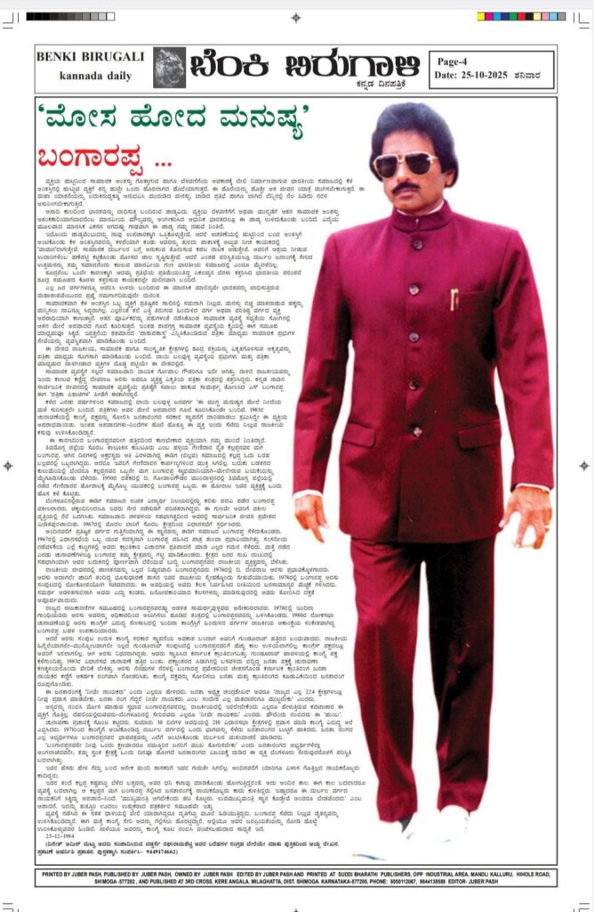 ಮಾಜಿ ಮುಖ್ಯಮಂತ್ರಿ ಎಸ್.ಬಂಗಾರಪ್ಪರ 93ನೇ ಜನ್ಮದಿನ- ಏನೆಲ್ಲ ವಿಶೇಷವಿದೆ? ಶಿ.ಜು.ಪಾಶ/Shi.ju.pasha MalenaduExpressOctober 25, 2025 0