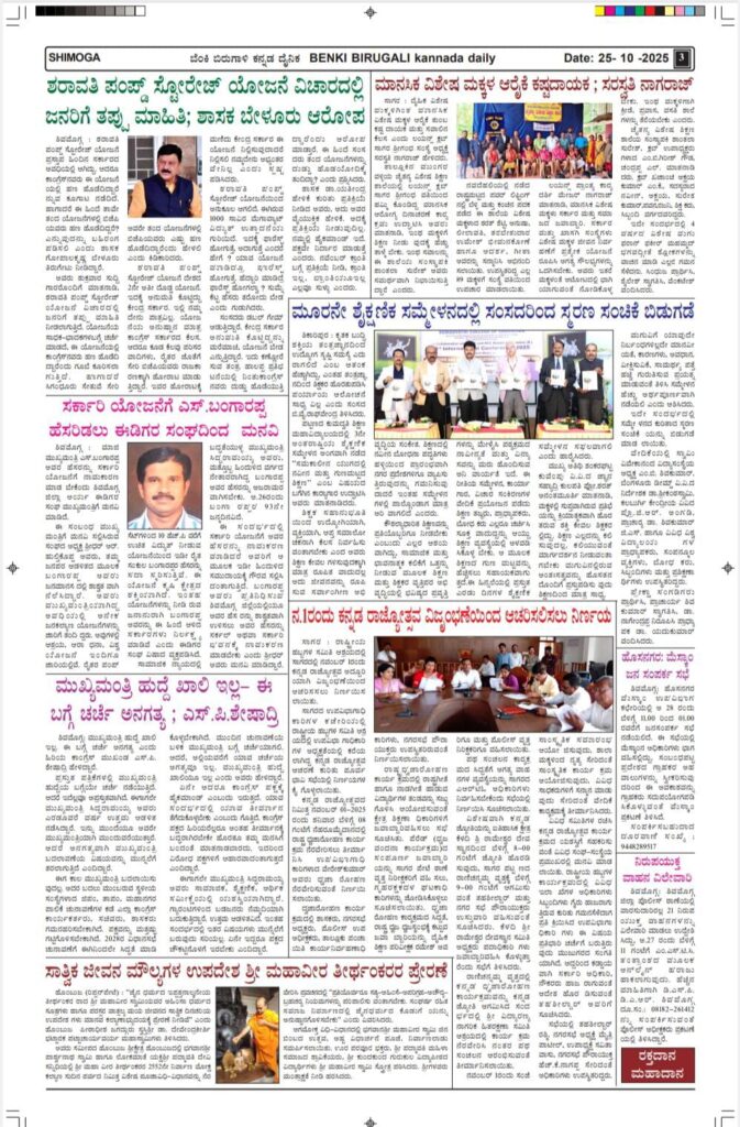 Special Newsಇಂದಿನ ಬೆಂಕಿ ಬಿರುಗಾಳಿ ದಿನಪತ್ರಿಕೆ ಶಿ.ಜು.ಪಾಶ/Shi.ju.pasha MalenaduExpressOctober 25, 202501 mins Post navigation Previous: ಮಾಜಿ ಮುಖ್ಯಮಂತ್ರಿ ಎಸ್.ಬಂಗಾರಪ್ಪರ 93ನೇ ಜನ್ಮದಿನ- ಏನೆಲ್ಲ ವಿಶೇಷವಿದೆ?Next: ದೇವಸ್ಥಾನಗಳಲ್ಲಿ ಕನ್ನ ಹಾಕುತ್ತಿದ್ದ ಕಳ್ಳನ ಬಂಧಿಸಿದ ಸೊರಬ ಪೊಲೀಸರು* *ಯಾರು ಈ ಕಳ್ಳ?*