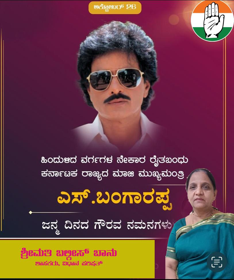 ಕರ್ನಾಟಕದ ಜನಪ್ರಿಯ ಮಾಜಿ ಮುಖ್ಯಮಂತ್ರಿಗಳು, ಹಿಂದುಳಿದ ವರ್ಗದ ಆಶಾಕಿರಣ, ಬಡವರ ಬಂಧು ಧೀಮಂತ ನಾಯಕರಾದ ದಿ || ಎಸ್ ಬಂಗಾರಪ್ಪ ನವರ ಹುಟ್ಟುಹಬ್ಬದ ಗೌರವ ಪೂರ್ವಕ ನಮನಗಳು* ಶಿ.ಜು.ಪಾಶ/Shi.ju.pasha MalenaduExpressOctober 26, 2025 0