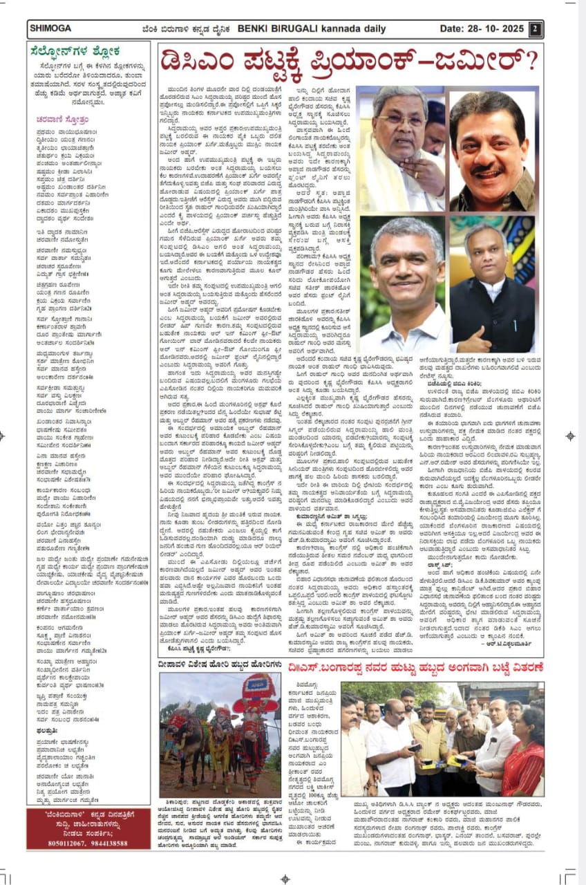 Special Newsಇಂದಿನ ಬೆಂಕಿ ಬಿರುಗಾಳಿ ದಿನಪತ್ರಿಕೆಯಲ್ಲೇನಿದೆ? ಶಿ.ಜು.ಪಾಶ/Shi.ju.pasha MalenaduExpressOctober 28, 202501 mins Post navigation Previous: ಬಸವ ತತ್ವ ಮತ್ತು ಲಿಂಗಾಯತ ಸಮಾಜದಲ್ಲಿ ಭಿನ್ನತೆ ತರುವ ಯತ್ನಕ್ಕೆ ಕಾಂಗ್ರೆಸ್ ಮುಖಂಡ ಹೆಚ್.ಸಿ.ಯೋಗೇಶ್ ತೀವ್ರ ವಿರೋಧNext: ಶಿವಮೊಗ್ಗದ ಕೊಮ್ಮನಾಳ್ ಸುತ್ತಮುತ್ತಲಿನಲ್ಲಿ ಬೃಹತ್ ಮಣ್ಣು ಮಾಫಿಯಾ!* *ಉಂಬಳೇಬೈಲಿನ ದುಃಖತಪ್ತ ಗೌಡರೆಂಬ ರಾಜಕಾರಣಿಯ ಜೊತೆ ಮಣ್ಣು ಲೂಟಿಕೋರರ ಮಹಾ ಲೂಟಿ!!* *ಶಿವಮೊಗ್ಗದ ಗಣಿ ಮತ್ತು ಭೂ ವಿಜ್ಞಾನ ಇಲಾಖೆ ಅಧಿಕಾರಿಗಳ ಶಾಮೀಲು?* *ತೋಟಕ್ಕೆಂದು ನೂರಾರು ಲೋಡ್ ಮಣ್ಣು ಲೂಟಿ ಮಾಡುತ್ತಿರುವ ಆ ರಾಜಕಾರಣಿ ಯಾರು ಗೊತ್ತಾ?* *ಎಲ್ಲಿಗೆ ಹೋಗುತ್ತಿದೆ ಈ ಬೆಲೆಬಾಳುವ ಮಣ್ಣು(ಗ್ರಾವೆಲ್)?* *ಇಲ್ಲಿದೆ ಸಂಪೂರ್ಣ ದಾಖಲೆ ಸಮೇತದ ವಿಶೇಷ ವರದಿ👇*