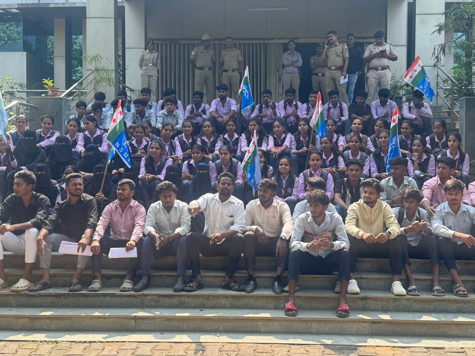 ಈ ಹಿಂದೆ ನವೆಂಬರ್ 4 ರಂದು ವಿಶ್ವವಿದ್ಯಾಲಯದಲ್ಲಿ ಕುಲಪತಿಗಳಿಗೆ ಹಾಗೂ ಕುಲಸಚಿವರಿಗೆ ಪರೀಕ್ಷಾಂಗ ಇವರಿಗೆ ಮನವಿಯನ್ನು ನೀಡಿದಾಗ 14/11/25 ರೊಳಗೆ ಸರಿಪಡಿಸುವ ಭರವಸೆಯನ್ನು ನೀಡಿದರೂ ಈಗಲೂ ಯಾಥಾಸ್ಥಿತಿ ಮುಂದುವರೆಸಿರುವುದನ್ನು ಜ ಖಂಡಿಸಿತು.