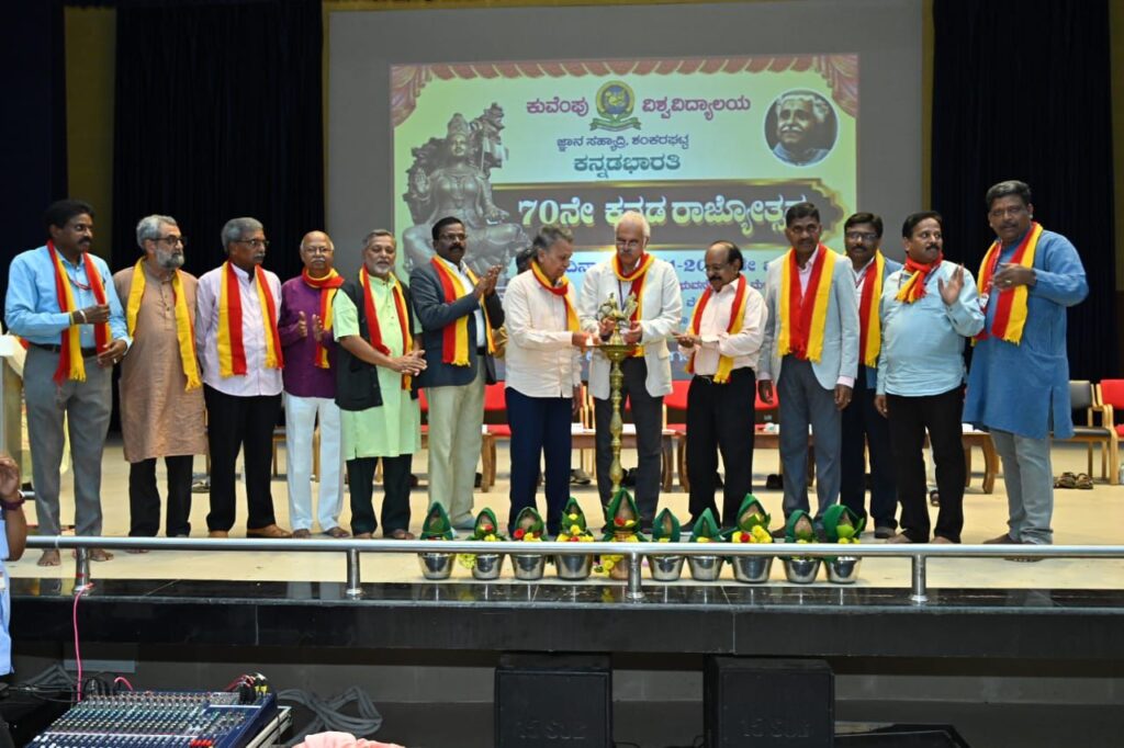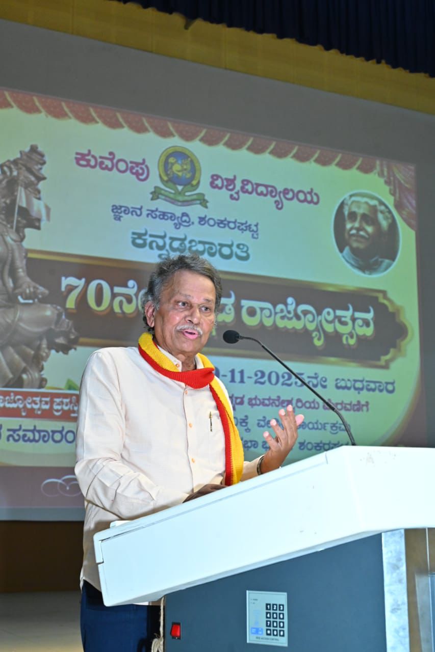 ಕುವೆಂಪು ವಿಶ್ವವಿದ್ಯಾಲಯದಲ್ಲಿ ಬುಧವಾರ ಬಸವ ಸಭಾ ಭವನದಲ್ಲಿ ಆಯೋಜಿಸಲಾಗಿದ್ದ 70ನೇ ಕನ್ನಡ ರಾಜ್ಯೋತ್ಸವ ಕಾರ್ಯಕ್ರಮವನ್ನು ಉದ್ಘಾಟಿಸಿ ಅವರು ಮಾತನಾಡಿದರು.
