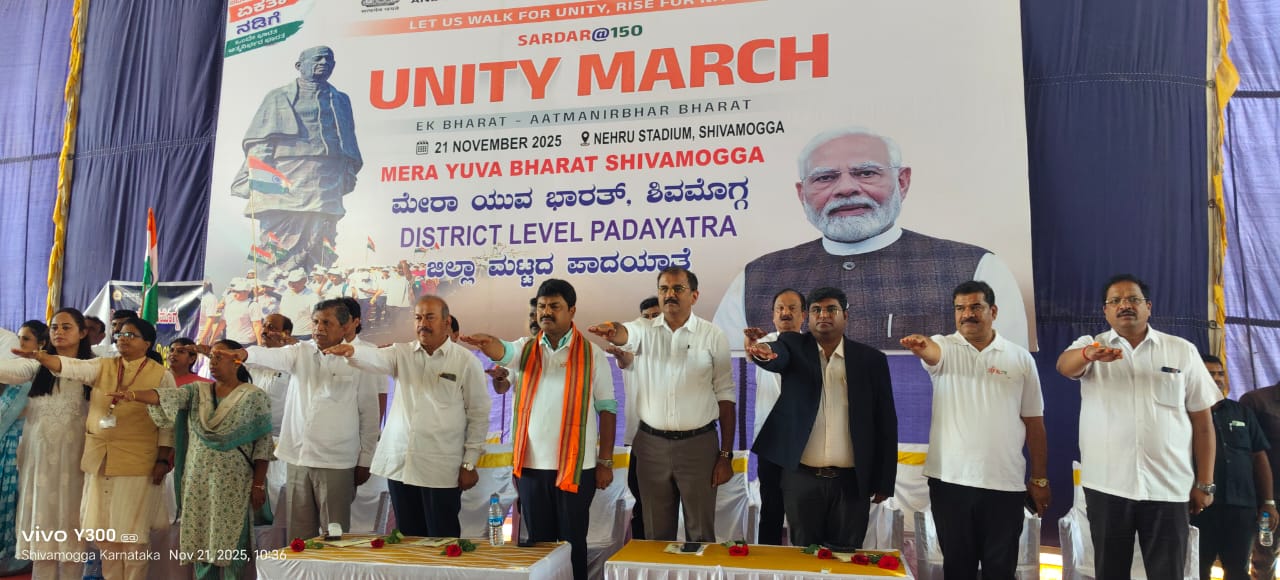 ಏಕತಾ ನಡಿಗೆ ಜಾಥಾ *ದೇಶಕ್ಕಾಗಿ ಪ್ರಾಣವನ್ನು ಬಲಿದಾನ ಮಾಡಿದ ನಾಯಕರನ್ನು ಸ್ಮರಿಸೋಣ : ಬಿ.ವೈ.ರಾಘವೇಂದ್ರ*