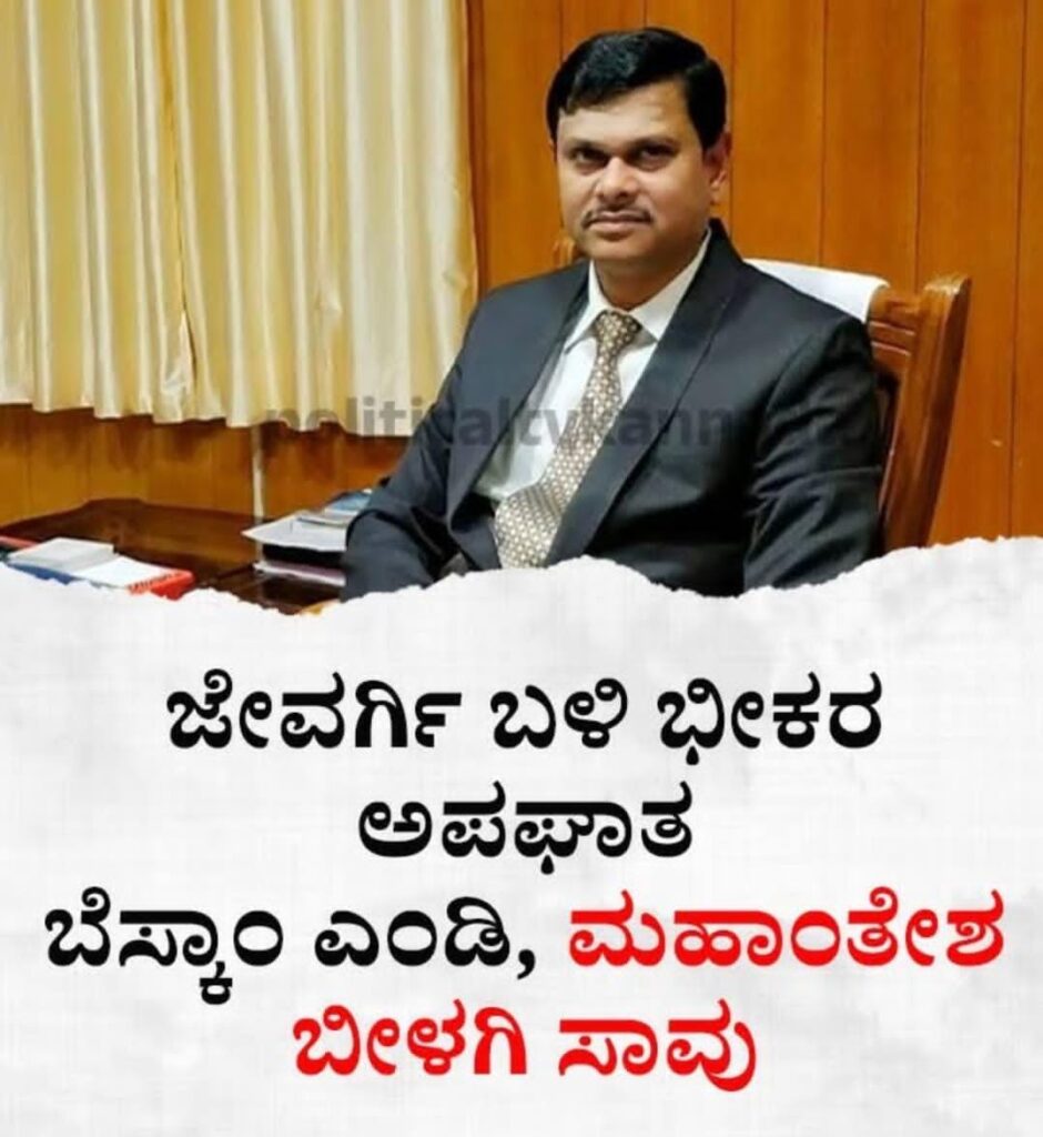 Previously, Senior ISS officer Mahantesh Bilagi, Managing Director (MD) of Bangalore Electricity Supply Company Limited (BESCOM), met with a car accident. While going from Vijayapura to Kalaburagi, the Innova car met with an accident, killing five people in the car, including Mahantesh Bilagi. The accident took place at Jegi police station.