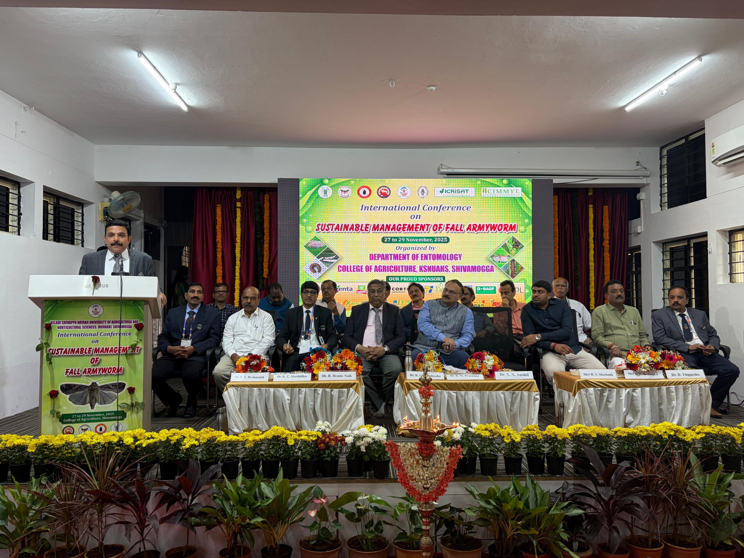 ಕೆಳದಿ ಶಿವಪ್ಪನಾಯಕ ಕೃಷಿ ಮತ್ತು ತೋಟಗಾರಿಕೆ ವಿಶ್ವವಿದ್ಯಾಲಯದಲ್ಲಿ ಗುರುವಾರ ಏರ್ಪಡಿಸಲಾಗಿದ್ದ ಸೈನಿಕ ಹುಳುವಿನ ಸುಸ್ಥಿರ ನಿಯಂತ್ರಣ ಕುರಿತಾದ ಅಂತರಾಷ್ಟಿçÃಯ ಸಮ್ಮೇಳನ ಕಾರ್ಯಕ್ರಮದಲ್ಲಿ ಮುಖ್ಯ ಅತಿಥಿಗಳಾಗಿ ಪಾಲ್ಗೊಂಡು ಅವರು ಮಾತನಾಡಿದರು.