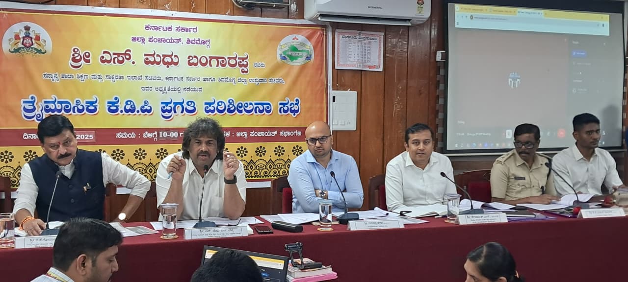 ತ್ರೈ ಮಾ ಸಿಕ ಕೆ.ಡಿ.ಪಿ. ಪ್ರ ಗತಿ ಪರಿಶೀ ಲನಾ ಸಭೆಯ ಅಧ್ಯ ಕ್ಷತೆ ವಹಿಸಿ ಮಾ ತನಾ ಡು ತ್ತಿದ್ದರು . ಅರಣ್ಯ ಇಲಾ ಖಾ ಅಧಿಕಾ ರಿಗಳು