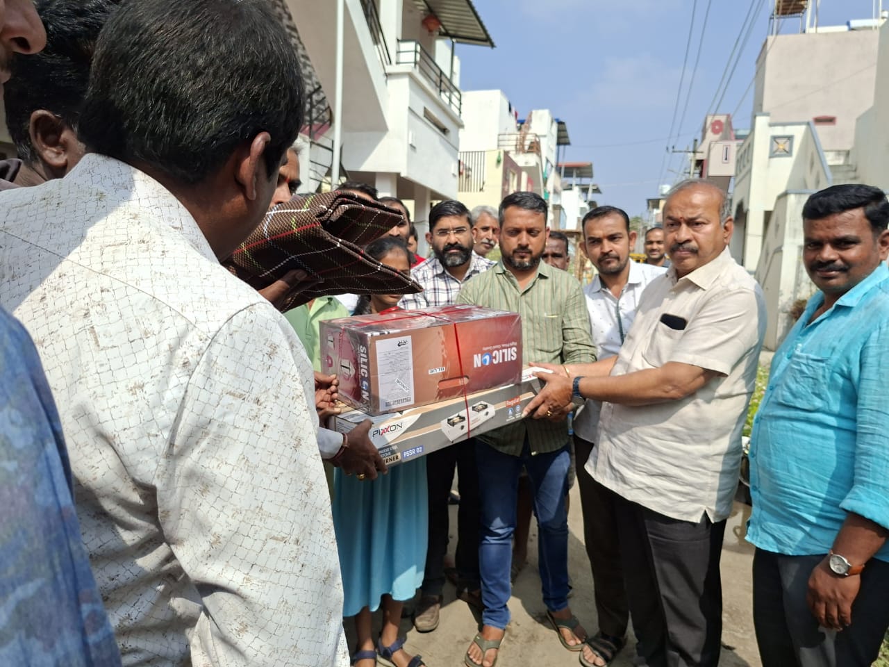 ಇತ್ತೀಚೆಗೆ ಶಿವಮೊಗ್ಗ ನಗರದ ಸಿದ್ದೇಶ್ವರ ನಗರದಲ್ಲಿ ಸಂಭವಿಸಿದ ಗ್ಯಾಸ್ ಸ್ಫೋಟದಿಂದ ಹಾನಿಗೊಳಗಾದ ಕುಟುಂಬಗಳಿಗೆ ಶಾಸಕರಾದ ಎಸ್ ಎನ್ ಚನ್ನಬಸಪ್ಪ ಅವರು ವಿಷ್ಣು ಸಮಾಜ, ವಿಕಾಸ್ ಟ್ರಸ್ಟ್ ಹಾಗೂ ಬಟ್ಟೆ ವರ್ತಕರ ಸಂಘದ ಸದಸ್ಯರೊಂದಿಗೆ ಭೇಟಿ ಮಾಡಿ, ಅವರ ಸಹಕಾರದೊಂದಿಗೆ ದಿನನಿತ್ಯ ಬಳಕೆಯ ಅಗತ್ಯ ವಸ್ತುಗಳು, ಬಟ್ಟೆಗಳು, ಬೆಡ್ಶೀಟ್ಗಳು ಹಾಗೂ ಆಹಾರ ಸಾಮಗ್ರಿಗಳನ್ನು ವಿತರಿಸಿದರು.
