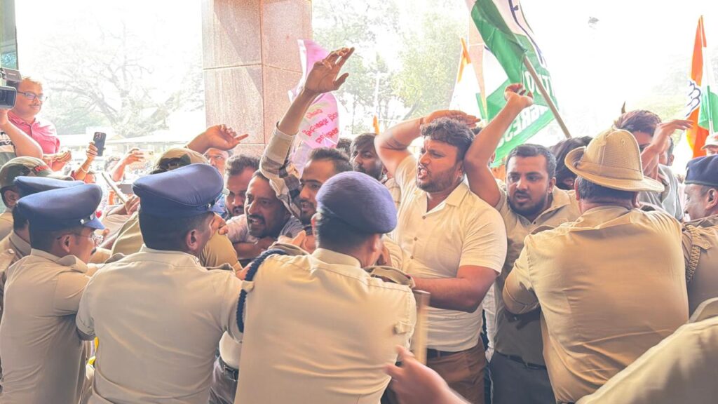 ರೈಲ್ವೆ ಪ್ರಯಾಣದರ ಹೆಚ್ಚಳ; ಯುವ ಕಾಂಗ್ರೆಸ್ ಕಾರ್ಯಕರ್ತರಿಂದ ರೈಲ್ವೆ ಸ್ಟೇಷನ್ ಮುತ್ತಿಗೆಯತ್ನ ತಡೆದ ಪೊಲೀಸರು