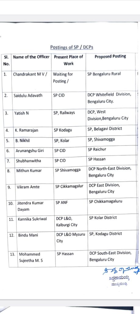 *ಶಿವಮೊಗ್ಗ ಎಸ್ ಪಿ ಮಿಥುನ್ ಕುಮಾರ್ ವರ್ಗಾವಣೆ* *ಶಿವಮೊಗ್ಗದ ನೂತನ ಎಸ್ ಪಿ ಆಗಿ ಬಿ.ನಿಖಿಲ್*
