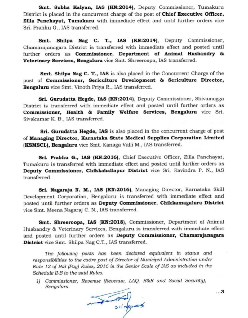 *ಡಿಸಿ ಗುರುದತ್ತ ಹೆಗಡೆಯವರಿಗೂ ವರ್ಗಾವಣೆ ಮಾಡಿದ ಸರ್ಕಾರ* *ಶಿವಮೊಗ್ಗ ನೂತನ ಜಿಲ್ಲಾಧಿಕಾರಿಯಾಗಿ ಪ್ರಭುಲಿಂಗ ಕವಲೀಕಟ್ಟಿ*
