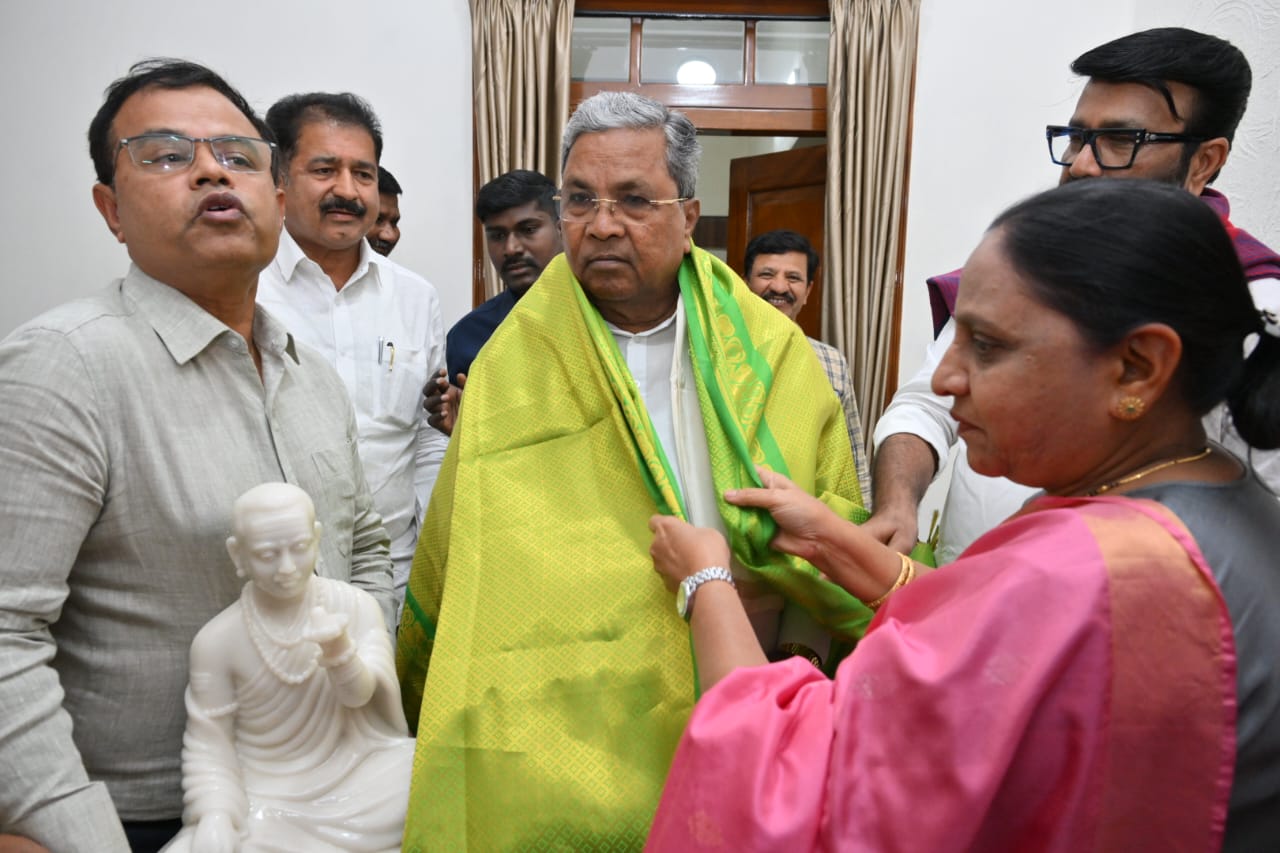 ಮುಖ್ಯಮಂತ್ರಿಗಳಾದ ಸಿದ್ದರಾಮಯ್ಯ ರವರನ್ನು ರಾಜ್ಯದ ದೀರ್ಘಾವಧಿ ಮುಖ್ಯ ಮಂತ್ರಿಯಾಗಿ ಸೇವೆ ಸಲ್ಲಿಸಿದ ಕೀರ್ತಿಗೆ ಪಾತ್ರರಾಗಿರುವ ಹಿನ್ನೆಲೆಯಲ್ಲಿ ಮುಖ್ಯಮಂತ್ರಿಗಳ ಅಧಿಕೃತ ನಿವಾಸ ಕಾವೇರಿಯಲ್ಲಿ ವಿಧಾನ ಪರಿಷತ್ ಸದಸ್ಯೆ ಶ್ರೀಮತಿ ಬಲ್ಕೀಷ್ ಬಾನು ಸನ್ಮಾನಿಸಿದರು.