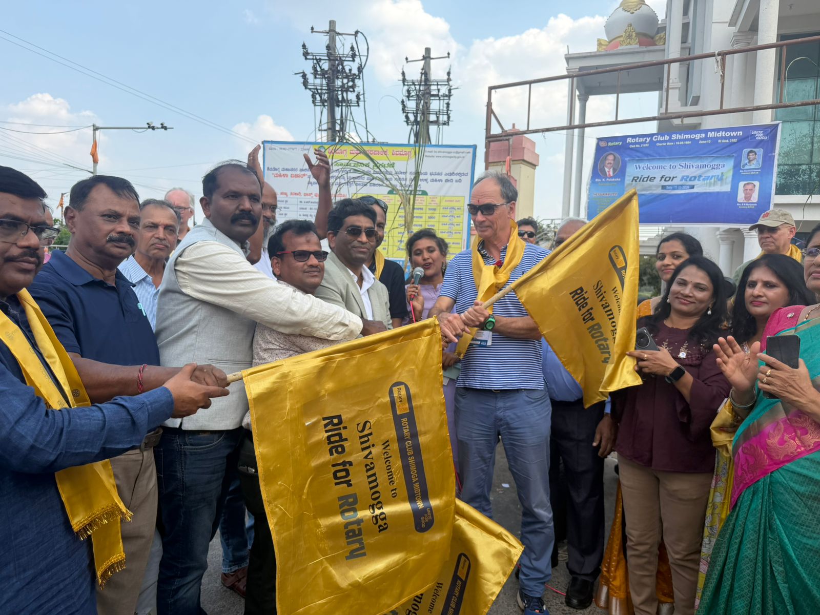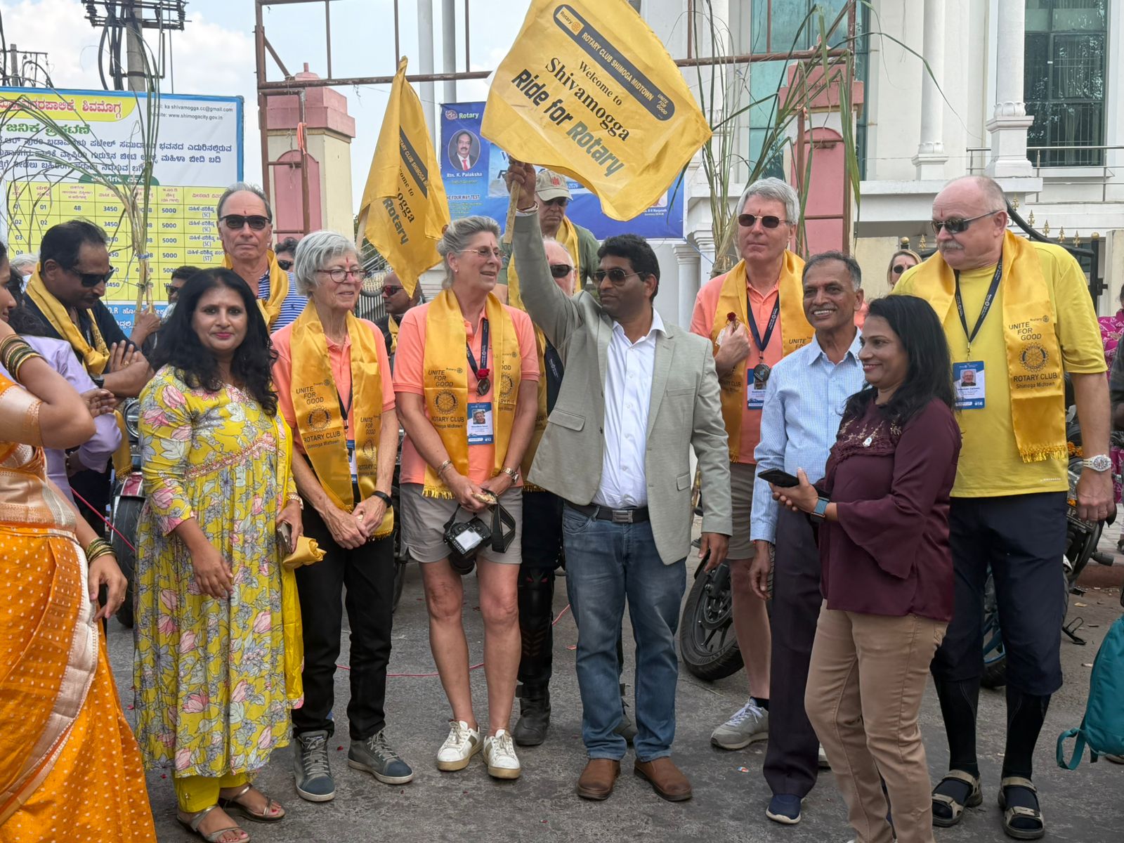 ಯುರೋಪ್ ಮತ್ತು ಉತ್ತರ ಅಮೆರಿಕ ಖಂಡಗಳ 16 ದೇಶಗಳಿಂದ ಆಗಮಿಸಿದ 22 ವಿದೇಶಿ ರೋಟೇರಿಯನ್ ಸದಸ್ಯರ “Ride for Rotary” ಎಂಬ ಅಂತಾರಾಷ್ಟ್ರೀಯ ಬೈಕ್ ಯಾತ್ರಾ ತಂಡಕ್ಕೆ ಶಿವಮೊಗ್ಗದಲ್ಲಿ ರೋಟರಿ ಕ್ಲಬ್ ಮಿಡ್ಟೌನ್ ವತಿಯಿಂದ ಭವ್ಯ ಸ್ವಾಗತ ನೀಡಲಾಯಿತು.