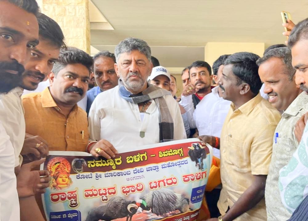 *ನಮ್ಮೂರ ಬಳಗ ಶಿವಮೊಗ್ಗದ ವತಿಯಿಂದ ಕೋಟೆ ಮಾರಿಕಾಂಬ ದೇವಿ ಜಾತ್ರಾ ಮಹೋತ್ಸವದ ಅಂಗವಾಗಿ ಫೆಬ್ರವರಿ 15ರಂದು ಹಮ್ಮಿಕೊಂಡಿರುವ ರಾಷ್ಟ್ರಮಟ್ಟದ ಬಾರಿ ಟಗರು ಕಾಳಗದ ಪೋಸ್ಟರನ್ನು ಉಪಮುಖ್ಯಮಂತ್ರಿಗಳಾದ ಡಿಕೆ ಶಿವಕುಮಾರ್ ಅವರು ಶಿವಮೊಗ್ಗ ನಗರದ ಕಿಮ್ಮನೆ ರೆಸಾರ್ಟ್ ನಲ್ಲಿ ಬಿಡುಗಡೆಗೊಳಿಸಿ ಶುಭ ಕೋರಿದರು.