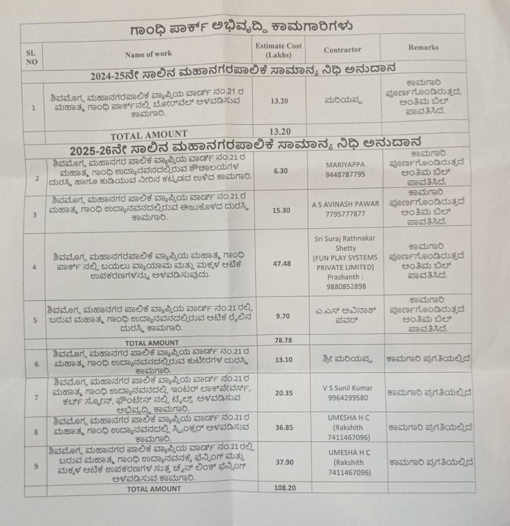 ಶಿವಮೊಗ್ಗದ ದೊಡ್ಡ ಪಾರ್ಕ್ ಈ ಗಾಂಧಿ ಪಾರ್ಕ್. ಯಡಿಯೂರಪ್ಪ ಸಿಎಂ ಆಗಿದ್ದಾಗ ಈ ಪಾರ್ಕಿನ ಅಭಿವೃದ್ಧಿ. ನಿರ್ವಹಣೆಗೆ ಟೆಂಡರ್ ಕರೆಯುತ್ತಿದ್ದೆವು. ಆದರೂ ವ್ಯತ್ಯಾಸಗಳಾಗುತ್ತಿದ್ದವು.