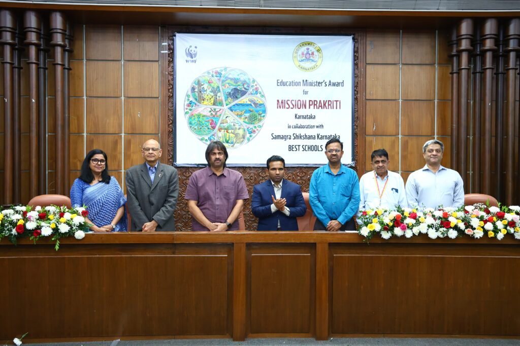ಬೆಂಗಳೂರು: ಸಮಗ್ರ ಶಿಕ್ಷಣ ಕರ್ನಾಟಕ (SSK) ಹಾಗೂ ಡಬ್ಲ್ಯೂ.ಡಬ್ಲ್ಯೂ.ಎಫ್ (WWF) ಇಂಡಿಯಾ ಸಹಯೋಗದಲ್ಲಿ ಆಯೋಜಿಸಲಾಗಿದ್ದ ‘ಮಿಷನ್ ಪ್ರಕೃತಿ: ತರಗತಿಯಿಂದ ಸಂರಕ್ಷಣೆಯತ್ತ’ (Mission Prakriti: From Classrooms to Conservation – Leading The Change) ಕಾರ್ಯಕ್ರಮದಲ್ಲಿ ರಾಜ್ಯದ ಹತ್ತು ಅತ್ಯುತ್ತಮ ಶಾಲೆಗಳಿಗೆ ಶಾಲಾ ಶಿಕ್ಷಣ ಮತ್ತು ಸಾಕ್ಷರತಾ ಇಲಾಖೆಯ ಸಚಿವರಾದ ಮಧು ಬಂಗಾರಪ್ಪ ಅವರು ಪ್ರಶಸ್ತಿ ಪ್ರದಾನ ಮಾಡಿದರು.