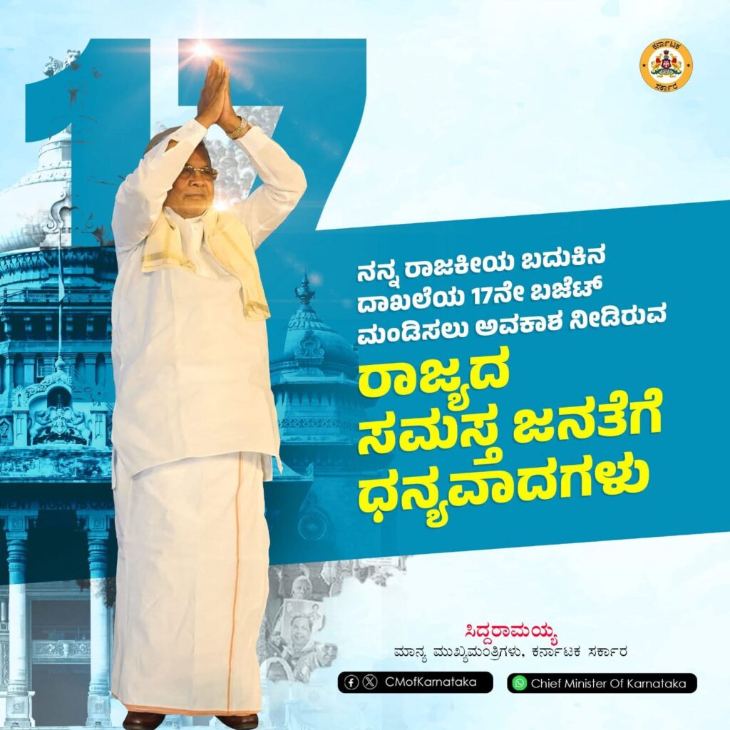 ಇಂದಿನ ನನ್ನ ದಾಖಲೆಯ 17ನೇ ಬಜೆಟ್ ಮೂಲಕ ಮುಂದಿನ ಒಂದು ವರ್ಷದ ಅವಧಿಗೆ ನಮ್ಮ ಸರ್ಕಾರ ಕೈಗೊಳ್ಳುವ ಜನಕಲ್ಯಾಣ – ಅಭಿವೃದ್ಧಿ ಕಾರ್ಯಗಳು, ರಾಜ್ಯದ ಆರ್ಥಿಕ ಸ್ಥಿತಿಗತಿ, ಸರ್ಕಾರದ ಮುಂದಿರುವ ಸವಾಲುಗಳು ಹಾಗೂ ಭವಿಷ್ಯದ ಪ್ರಗತಿಯ ಮುನ್ನೋಟ…