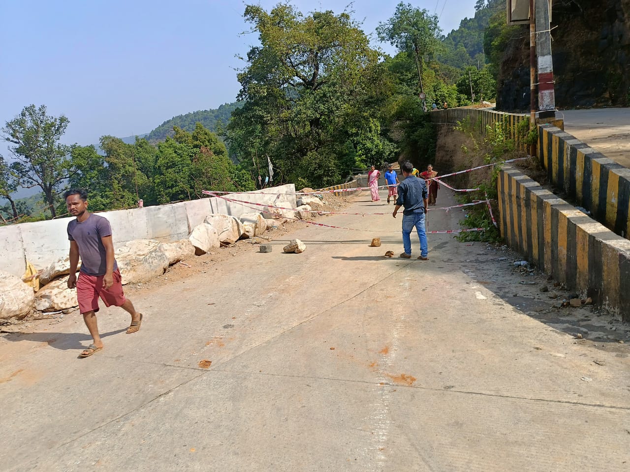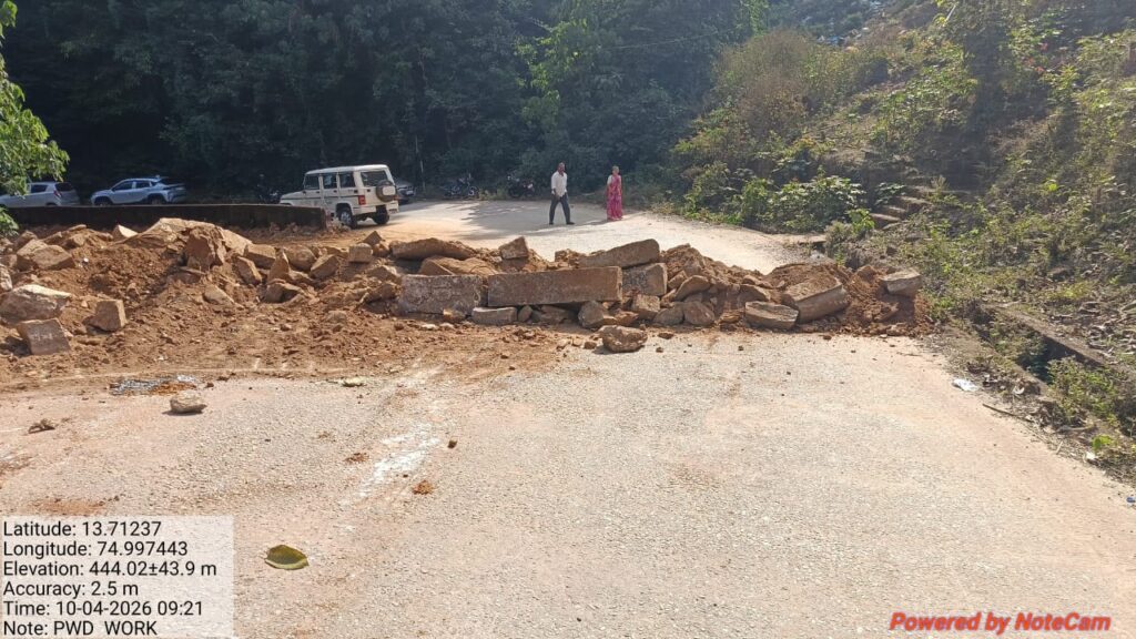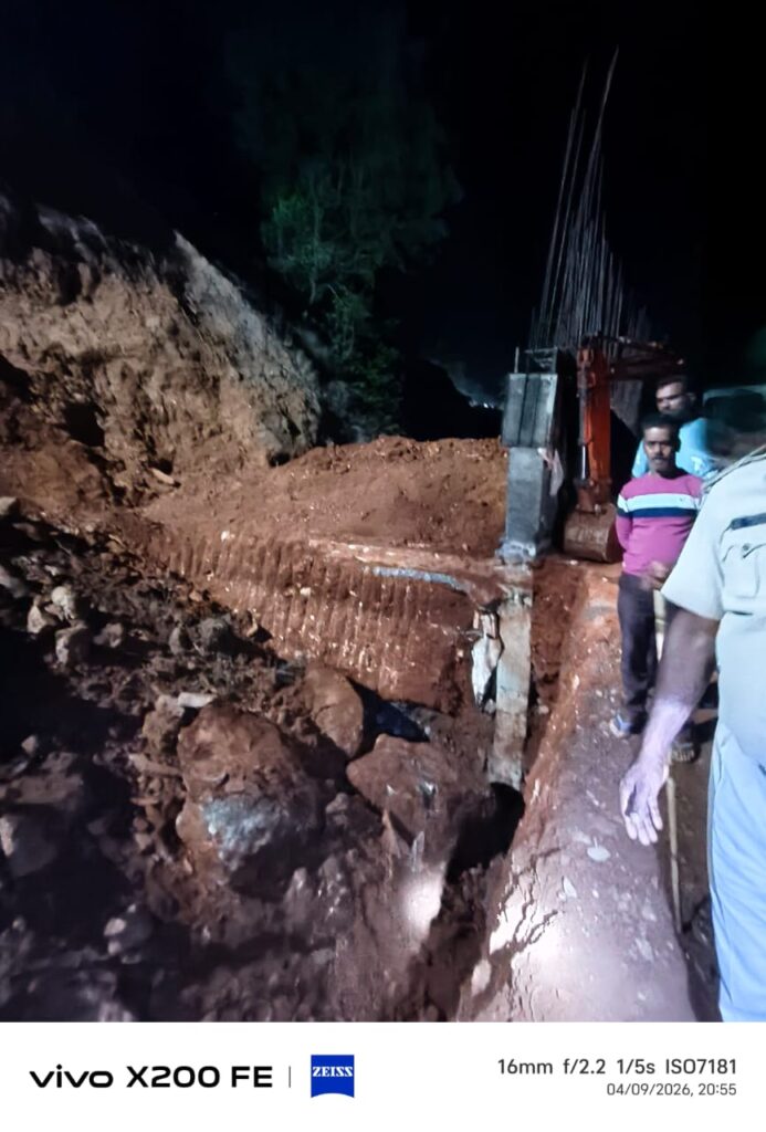ಹುಲಿಕಲ್ ಘಾಟ್ ಹೇರ್ ಪಿನ್ ಕ್ರಾಸ್ ನಲ್ಲಿ ಕಾಂಕ್ರೀಟ್ ವಾಲ್ ಕೆಲಸದ ವೇಳೆ ಕುಸಿದಿದ್ದ ಧರೆ
