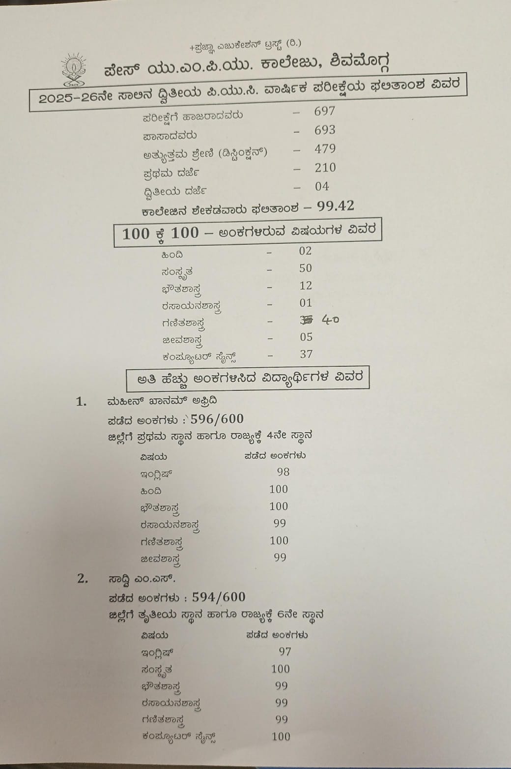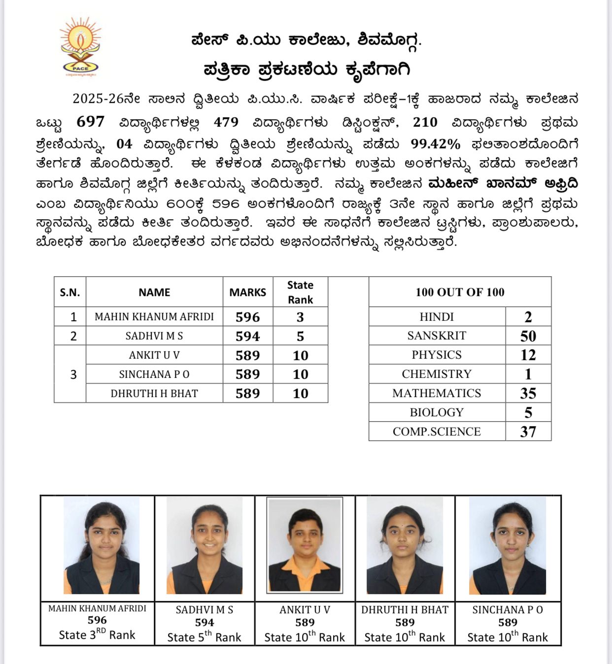 *ದ್ವಿತೀಯ ಪಿಯುಸಿ ಫಲಿತಾಂಶ;* *ಶಿವಮೊಗ್ಗದ ಪೇಸ್ ಯು ಎಂ ಪಿ ಯು ಕಾಲೇಜಿಗೆ ರಾಜ್ಯದಲ್ಲೇ 4ನೇ ಸ್ಥಾನ* *ರಾಜ್ಯಕ್ಕೇ ಈ ಕಾಲೇಜು ಆಸ್ತಿಯಾಗುವತ್ತ ವಿಶೇಷ ಪ್ರಯತ್ನ – ಮಾಜಿ ಡಿಸಿಎಂ ಕೆ.ಎಸ್.ಈಶ್ವರಪ್ಪ- ಕೆ.ಇ.ಕಾಂತೇಶ್* *ಜಂಟಿ ಪತ್ರಿಕಾಗೋಷ್ಠಿ*