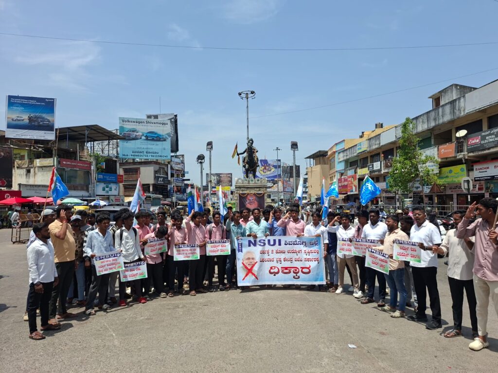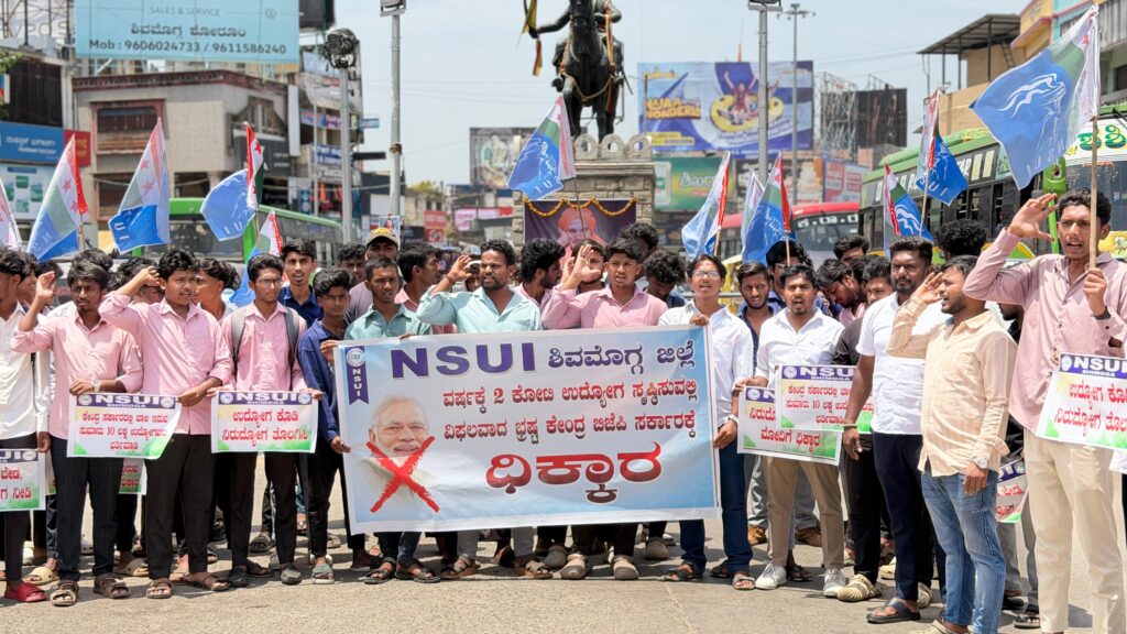 ಶಿವಮೊಗ್ಗ ಜಿಲ್ಲಾ NSUI ವತಿಯಿಂದ ಉದ್ಯೋಗ ನೀಡದೆ ಯುವಕರಿಗೆ ವಂಚುತ್ತಿರುವ ಕೇಂದ್ರ BJP ಸರ್ಕಾರದ ವಿರುದ್ಧ ಪ್ರತಿಭಟನೆ