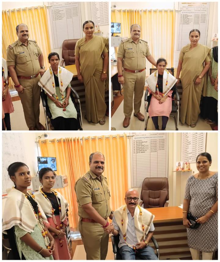 ಬಟ್ಟೆ ಅಂಗಡಿಯಲ್ಲಿ ಕೆಲಸ ಮಾಡುವ ಕು.ಸ್ವಾತಿ ಮತ್ತು ಕು.ಸಂಗೀತಾ ಹಾಗೂ ಅಂಗಡಿ ಮಾಲೀಕ ಮಾರ್ತಾಂಡ ಅಭಿನಂದನೆಗೊಳಗಾದವರು.