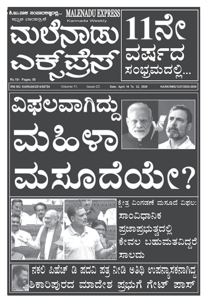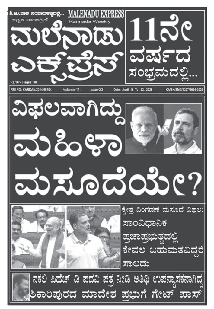 ಮಹಿಳಾ ಮೀಸಲಾತಿ ಮಸೂದೆ ಬಿಜೆಪಿಯವರ ರಾಜಕೀಯ ಹತಾಶೆಯ ಅಸ್ತ್ರ; ವೈ.ಹೆಚ್.ನಾಗರಾಜ್ ಟೀಕೆ ಶಿ.ಜು.ಪಾಶ/Shi.ju.pasha MalenaduExpressApril 21, 2026 0