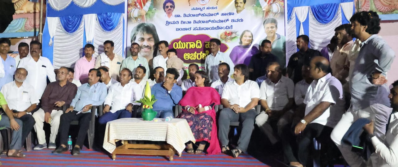 ಸವಳಂಗ ರಸ್ತೆಯ ಕುಂಚೇನಹಳ್ಳಿ ಗ್ರಾಮದಲ್ಲಿ ಮಂಗಳವಾರ ಆಯೋಜಿಸಿದ್ದ ‘ನಮ್ಮೂರ ಹುಡುಗ ಡಾ.ಶಿವರಾಜಕುಮಾರ್ ಹಾಗೂ ಗೀತಾ ಶಿವರಾಜಕುಮಾರ್ ಅವರು ಬಂಜಾರ ಸಮುದಾಯದೊಂದಿಗೆ ಶೀರ್ಷಿಕೆಯಡಿಯ ಯುಗಾದಿ ಹಬ್ಬ ಆಚರಣೆಯಲ್ಲಿ ಪಾಲ್ಗೊಂಡು ಮಾತನಾಡಿದರು.