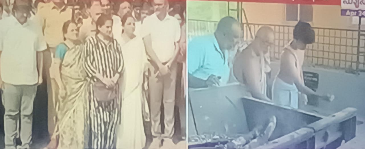 ಶಿವಮೊಗ್ಗದ ರೋಟರಿ ಚಿತಾಗಾರದಲ್ಲಿ ಆರಂಭವಾದ ಉಗ್ರರಿಂದ ಹತರಾದ ಮಂಜುನಾಥ್ ಅಂತ್ಯಕ್ರಿಯೆ… ಸರ್ಕಾರಿ ಗೌರವ ರಕ್ಷೆಯಲ್ಲಿ ಅಂತ್ಯಕ್ರಿಯೆ… ಬ್ರಾಹ್ಮಣ ಸಂಪ್ರದಾಯದ ಪ್ರಕಾರ ಅಂತ್ಯಕ್ರಿಯೆ… ಜಿಲ್ಲಾ ಉಸ್ತುವಾರಿ ಸಚಿವ ಮಧು ಬಂಗಾರಪ್ಪ, ಸಂಸದ ಬಿ.ವೈ.ರಾಘವೇಂದ್ರ, ಎಂ ಎಲ್ ಸಿ ಶ್ರೀಮತಿ ಬಲ್ಕೀಶ್ ಬಾನು, ಶಾಸಕ ಚನ್ನಬಸಪ್ಪ ಸೇರಿದಂತೆ ಗಣ್ಯರು ಭಾಗಿ… ಮಗ ಅಭಿಷೇಕ್ ನಿಂದ ಅಗ್ನಿಸ್ಪರ್ಷ